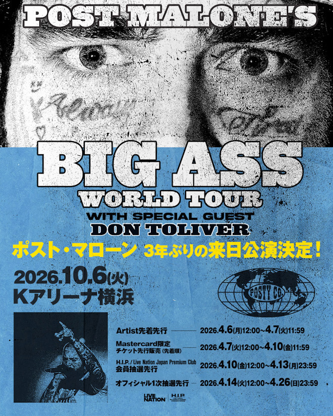 そんなPost Maloneが、今度はThe BIG ASS Stadium World Tourでアジアに乗り込んでくる。9月からスタートするこのツアーでは、香港、高雄、バンコク、シンガポール、クアラルンプール、マニラ、ソウルを巡り、最終日の10月6日には日本のKアリーナ横浜に上陸する予定だ。 ただ、かつての"ヒップホップのPosty"を愛するファンからすれば、セットリストがカントリー寄りになるのではという懸念もあるだろう。